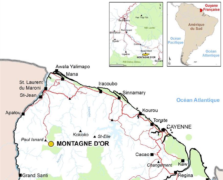 Desde 2011, a empresa canadense de mineração Columbus Gold, tem dado atenção para a região a 125 quilômetros ao sul de Saint-Laurent-du-Maroni, localizada no noroeste da Guiana. A empresa afirma ter encontrado cerca de ‘’85 toneladas de ouro no local, e se associou à gigante russa Norgold para realizar um projeto de grande escala”.