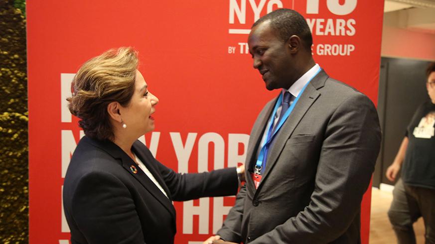 Na imagem: A Secretária Executiva das Nações Unidas sobre mudanças climáticas. Patrícia Espinosa, com o executivo-chefe da FONERW, Hubert Ruzibiza.