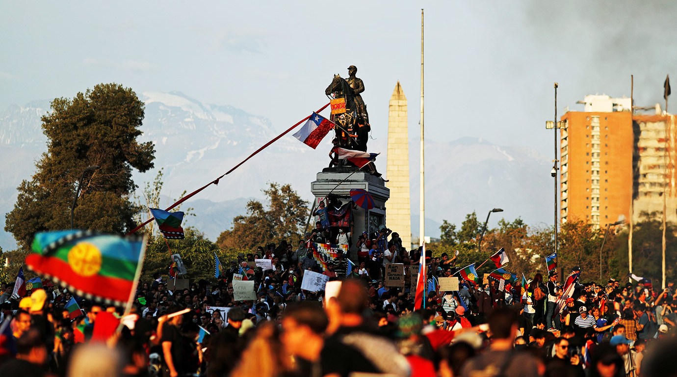 A retração internacional do Chile é fruto das recentes manifestações que ocuparam as ruas de Santiago. Tais manifestações, por sua vez, carregam uma diversidade de demandas, mas todas convergem no que tange a urgência de mudanças estruturais na economia neoliberal chilena. Piñera realizou concessões e tomou medidas consideradas contrárias ao seu plano de governo, com o intuito de tentar amenizar as mobilizações, porém não têm obtido sucesso. Dessa forma, a recorrência dos protestos – que já conseguiu reunir 100 milhões de pessoas – fez com que Piñera suspendesse “o encontro da Cooperação Econômica Ásia-Pacífico (Apec), que reuniria líderes mundiais nos dias 16 e 17 de novembro, e da Conferência do Clima da ONU, a COP-25, prevista para 2 a 13 de dezembro” (CAVALHEIRO, 2019, s/p). A suspensão, por sua vez, coloca o Chile em uma posição retraída no cenário internacional e traz danos à imagem do país, conforme o analista Juan Pablo Toro.