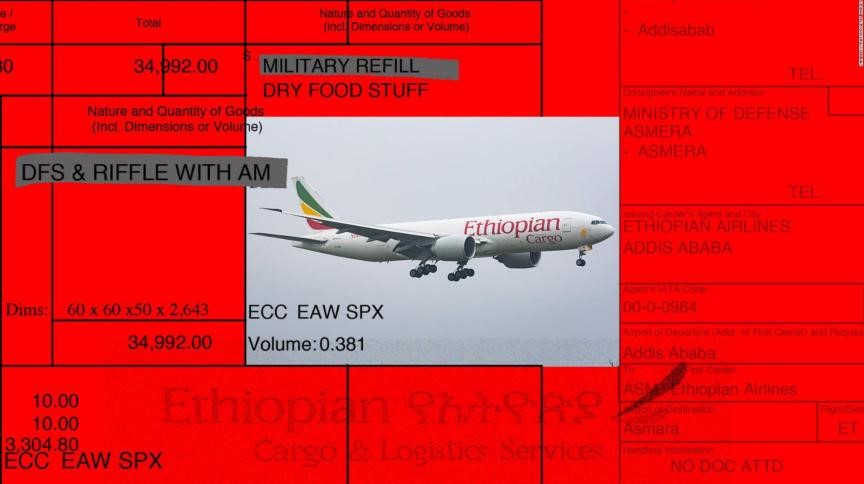 Documentos de carga obtidos pela CNN, bem como relatos de testemunhas oculares e evidências fotográficas, confirmam que armas foram transportadas entre o aeroporto internacional de Adis Abeba e os aeroportos nas cidades de Asmara e Massawa a bordo de vários aviões da Ethiopian Airlines em novembro de 2020 durante as primeiros semanas do conflito em Tigray.