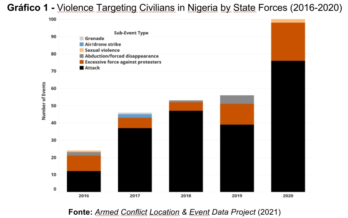 AYANDELE, Olajumoke. Lessons from the #EndSARS Movement in Nigeria. [s.l.] Armed Conflict Location & Event Data Project (ACLED), 2021. Disponível em: <https://reliefweb.int/sites/reliefweb.int/files/resources/acleddata.com-Lessons%20from%20the%20EndSARS%20Movement%20in%20Nigeria.pdf> Acesso em 19 nov. 2021