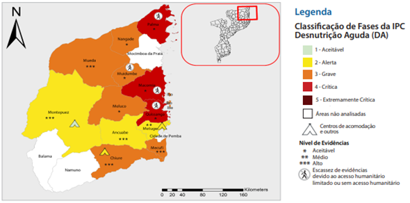 Todos esses fatores combinados levaram Moçambique a figurar como um país em situação de desnutrição aguda de acordo com a Classificação Integrada da Fase de Segurança Alimentar (IPC). A desnutrição aguda ocorre quando