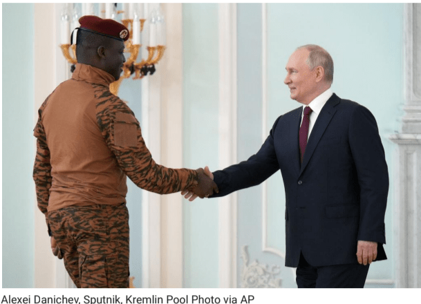 A relação com a Rússia tem crescido este ano, especialmente após o anúncio em julho (2023) de que a Rússia distribuiria cereais a seis países africanos, sendo um desses Burkina Faso. Mais recentemente, um novo acordo foi concluído entre ambas as partes, dessa vez focado na construção de uma central nuclear no país.